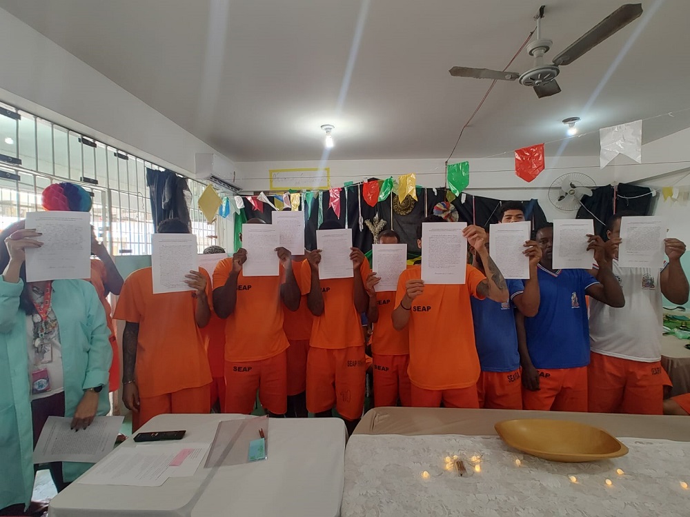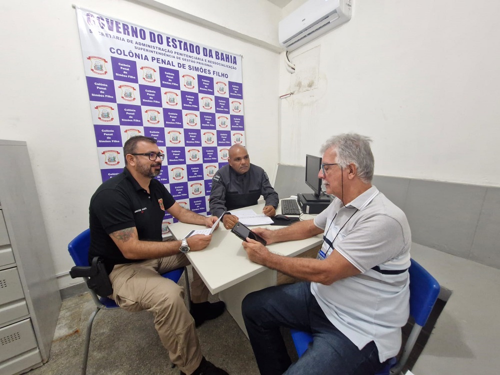 A união do conhecimento jurídico e o voluntariado de um policial penal tem transformado a realidade dos internos da Colônia Penal de Simões Filho, na Região Metropolitana de Salvador. Homens privados de liberdade, condenados pela justiça e cumprindo pena, enfrentavam dificuldades no acesso à assistência jurídica e demandavam necessidade de conhecimento das questões relacionadas à vida carcerária. Foi quando o policial penal Amarildo Monteiro, formado em Direito, passou a prestar voluntariamente consultoria jurídica à Unidade e aos reeducandos. A iniciativa, que conta com o apoio da Secretaria de Administração Penitenciária e Ressocialização (SEAP), tem como objetivo observar e sinalizar à justiça os casos em que hajam irregularidades processuais e esclarecer para o interno em que momento se encontra o seu cumprimento de pena. Amarildo realiza o levantamento da situação de cada um dos internos, apresenta para eles o tempo de pena cumprido e quanto falta para progressão de regime, até chegar à tão sonhada liberdade. O resultado desse trabalho reflete diretamente na ressocialização dos apenados, que após tomarem ciência da própria situação penal, se automotivam à participação nos projetos de educação e trabalho, para remição de pena. A iniciativa deu tão certo, que a Unidade resolveu inscrever o projeto no Innovare, prêmio nacional que tem como objetivo identificar, divulgar e difundir práticas que contribuam para o aprimoramento da Justiça no Brasil. Essa semana a Unidade recebeu um dos representantes do concurso, que acompanhou de perto a assistência jurídica gratuita prestada pelo Policial Penal aos internos. Essa etapa da visita dos consultores é classificatória para a grande final. Os finalistas premiados da edição serão revelados ao público no fim do ano, em cerimônia no Supremo Tribunal Federal (STF), em Brasília.