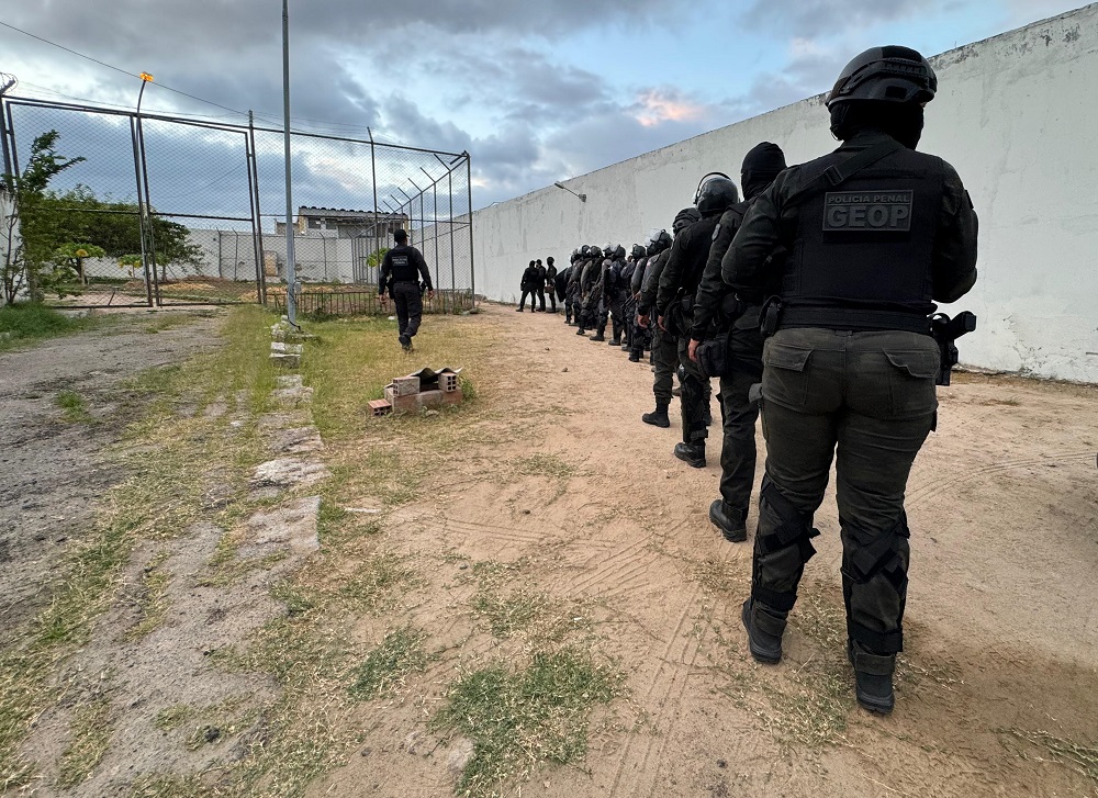 Além das equipes do Grupamento Especializado em Operações Prisionais (GEOP), da Central de Monitoramento Eletrônico de Pessoas (CMEP) e policiais penais ordinários, a turma que está participando do 2º Curso de Operações Prisionais Especializadas (Cope-BA) da Seap, acompanhada de instrutores do Geop e da Polícia Militar, também estão atuando na intervenção, como parte prática da capacitação que está em fase conclusiva.