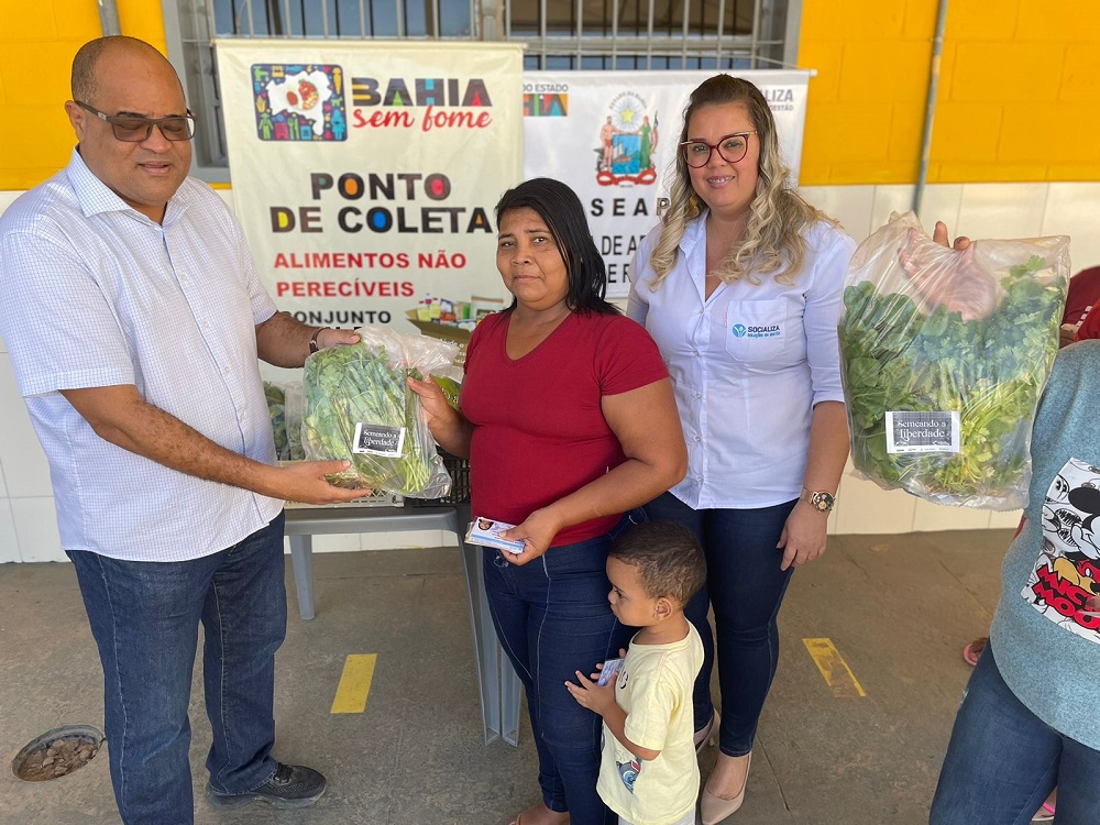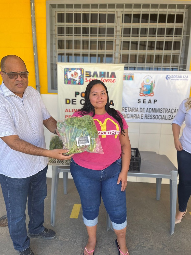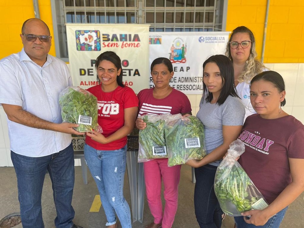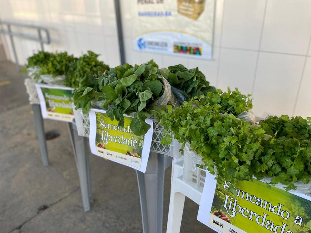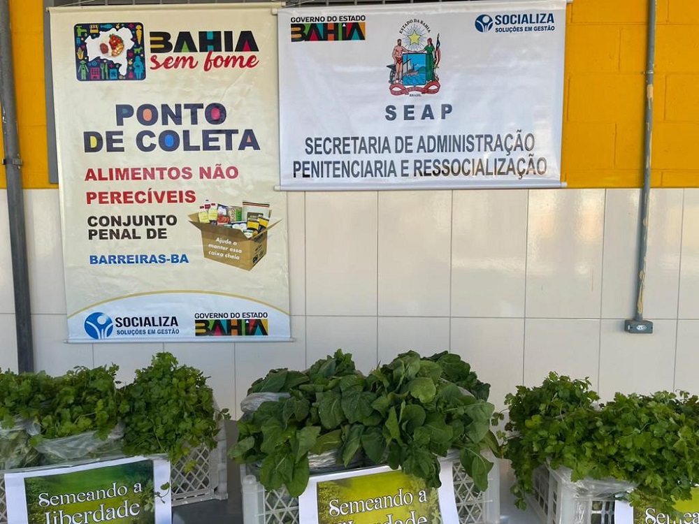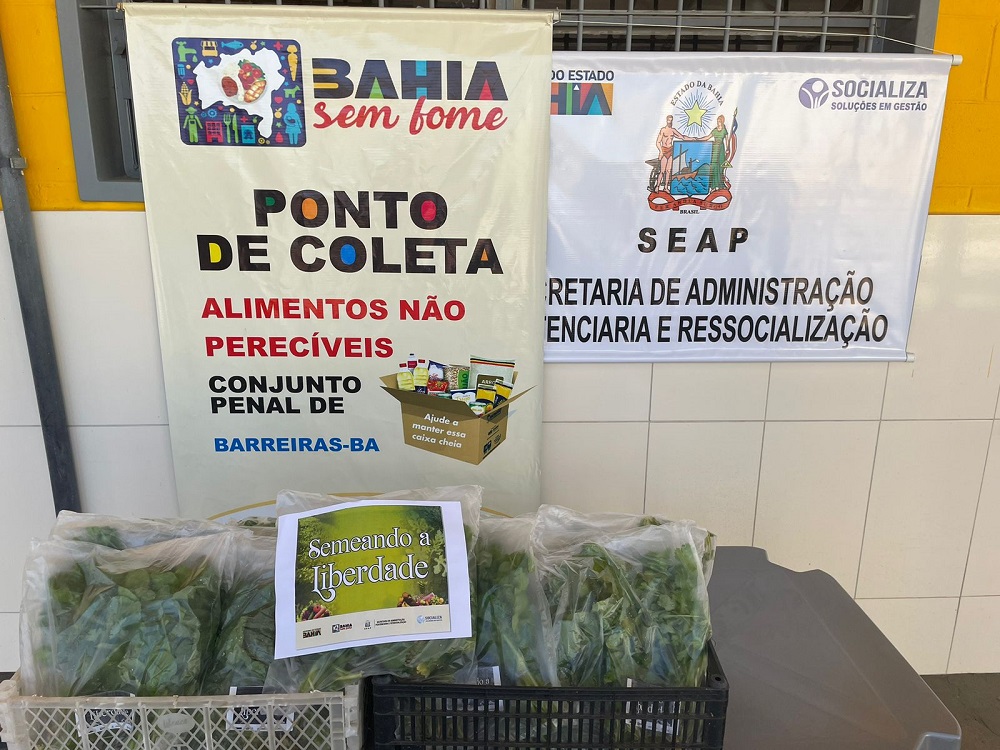 O Conjunto Penal de Barreiras distribuiu hoje mais de 140 kits de hortaliças orgânicas cultivadas na unidade, para entidades sem fins lucrativos parceiras da Central de Apoio e Acompanhamento às Penas e Medidas Alternativas (CEAPA) - Rede Social Barreiras, através da Secretaria de Administração Penitenciária e Ressocialização (Seap). É o projeto "Semeando a Liberdade”, cuja produção de alimentos é feita pelos reeducandos, com objetivo de apoiar as ações do BAHIA SEM FOME no alcance às famílias em condição de insegurança alimentar, além de garantir parte do consumo dos próprios internos. Nessa distribuição foram contempladas a Cáritas Diocesana de Barreiras mantenedora do Abrigo dos Idosos São João Batista, o Albergue São José e os seis Centros de Capacitação do Projeto Catavento. A estratégia de produção de alimentos nos presídios é um dos marcos na política de ressocialização da SEAP. Há unidades produtivas implantadas em Teixeira de Freitas, Itabuna, Barreiras, Feira de Santana e Eunápolis.