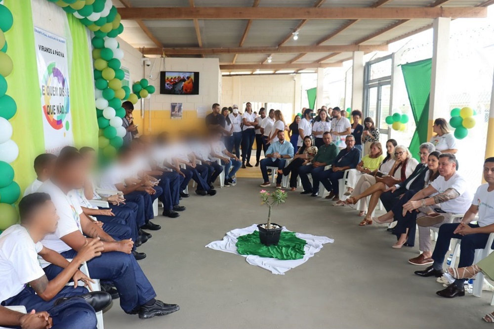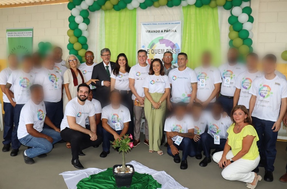 O Projeto Virando a Página alcançou mais uma importante etapa. Na manhã desta quinta-feira (31), no Conjunto Penal Masculino de Salvador (CPMS), na Mata Escura, uma oficina de leitura com internos da Unidade marcou o início da produção de mais um livro escrito por pessoas privadas de liberdade, pela editora Giostri, no sistema prisional baiano. Com o título “E Quem disse que não…”, a obra trará a construção de textos livres, em fábulas, para despertar a imaginação, o lúdico e as memórias da infância dos internos. A Secretaria de Administração Penitenciaria e Ressocialização da Bahia (Seap), em parceria com a Corregedoria do Tribunal de Justiça da Bahia (TJ-BA), apostam nesse projeto de incentivo à leitura e escrita como uma forma de ressocialização e recomeço. Entre as autoridades presentes no evento, o Secretário da Seap José Antônio Maia, o Desembargador e Corregedor-Geral do TJ-BA José Edivaldo Rotondano, a juíza idealizadora do projeto Liz Rezende e a juíza da Segunda Vara de Execuções Penais, Maria Angélica Carneiro.