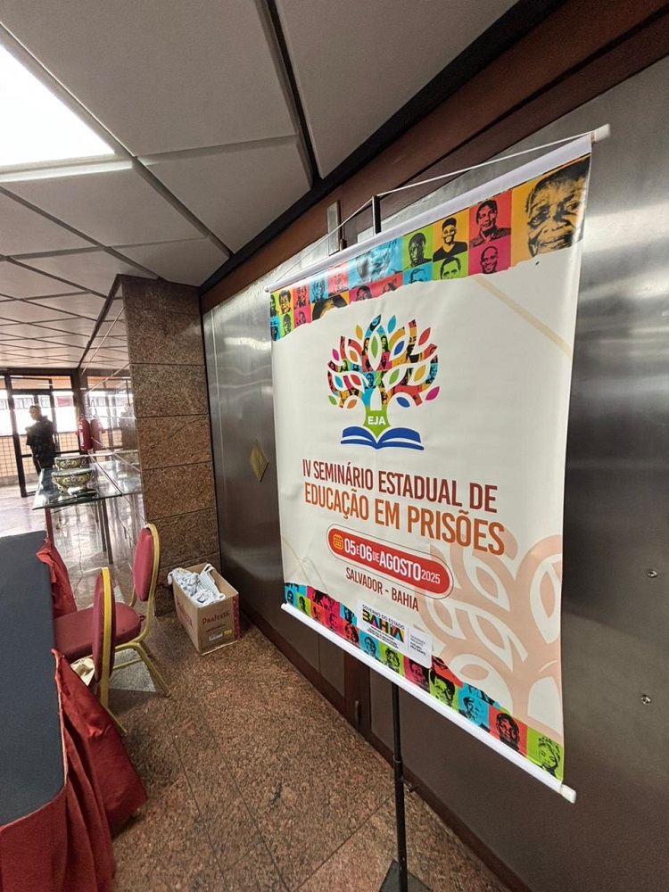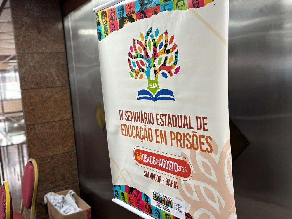 Aconteceu na manhã desta terça-feira (5), no Hotel Fiesta, no bairro do Itaigara, em Salvador, o IV Encontro Baiano de Educação em Prisões, um marco na consolidação de políticas públicas voltadas à educação de pessoas privadas de liberdade no estado da Bahia. A ação foi promovida pela Secretaria de Administração Penitenciária e Ressocialização (SEAP), em parceria com a Secretaria de Educação (SEC), e contou também com representantes da Secretaria de Justiça e Direitos Humanos (SJDH) e do Ministério Público da Bahia.