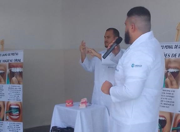 Durante a programação foram ministrados temas que vão desde o auto-cuidado, até a saúde bucal e a autoestima para internos de dois pavilhões do CPLF. Ao final da palestra foi realizada a entrega de kit´s para a limpeza dental para todos os reeducandos.