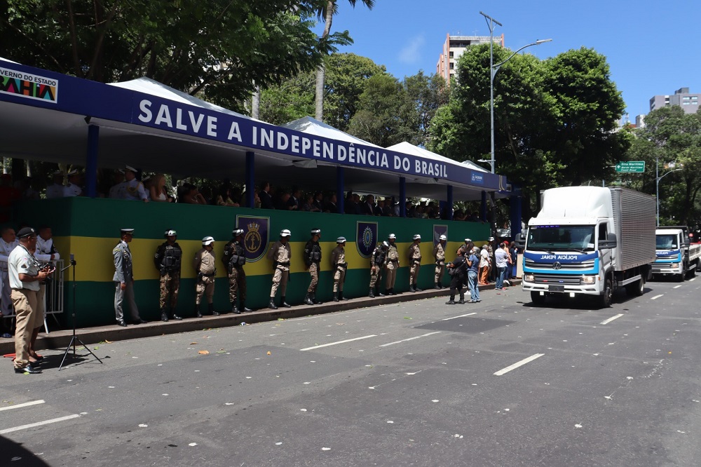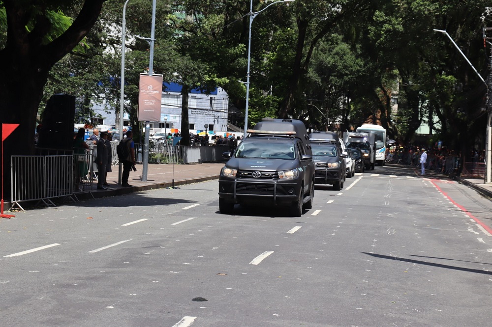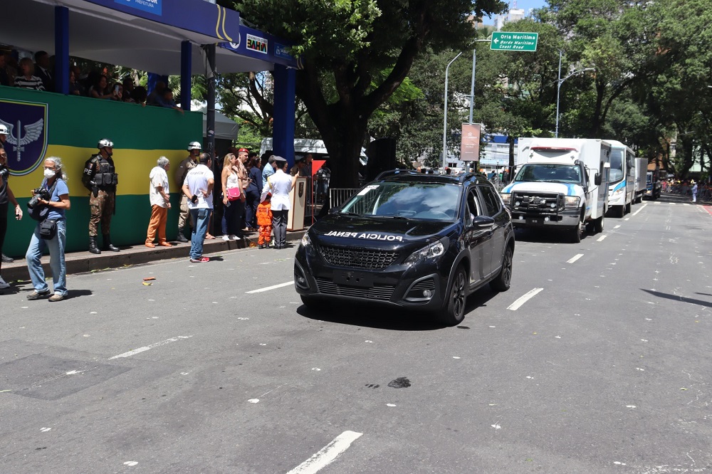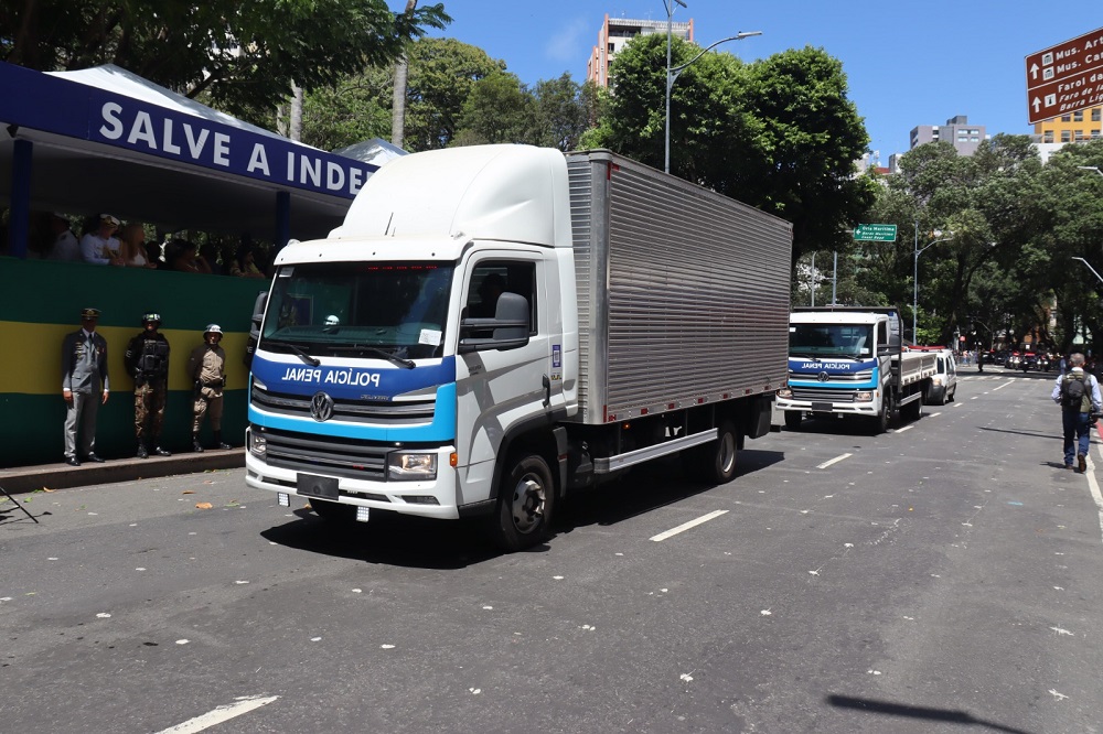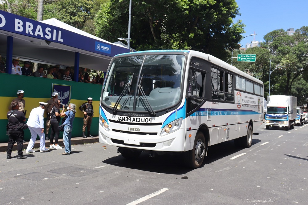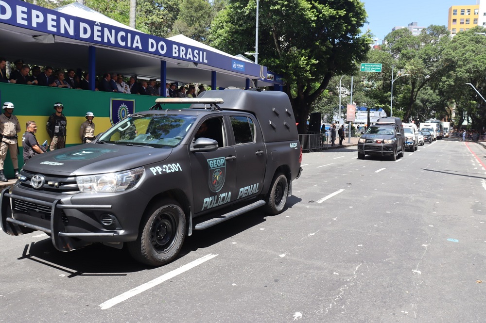 Pela primeira vez na história, a Polícia Penal participou do Desfile Cívico do sete de setembro no comboio das viaturas da forças de segurança do Estado. No grupamento motorizado que representou a corporação, diretores das unidades prisionais e os policiais penais em atuação mostraram orgulho em poder participar do ato cívico. Para o diretor do Presídio Salvador, Marcelo Jorge, que trabalha no sistema penitenciária há 33 anos, a participação da polícia penal no desfile é um marco. “ Estou emocionado, porque nunca vivi isso em tanto tempo de serviço. Estamos aqui para sermos vistos e agora esse lugar também é nosso”. Com a mesma satisfação, o Policial Penal e Coordenador de Segurança Luiz Gonzaga lembrou que a Polícia Penal no desfile é um exemplo para a sociedade de que segurança pública é mais ampla, não se restringe a determinados segmentos e completou: “Sem dúvidas um momento ímpar para todos nós.”