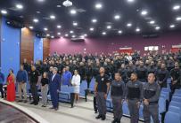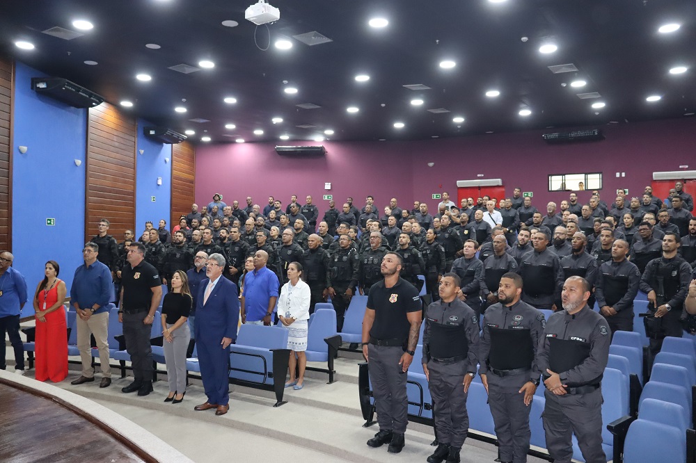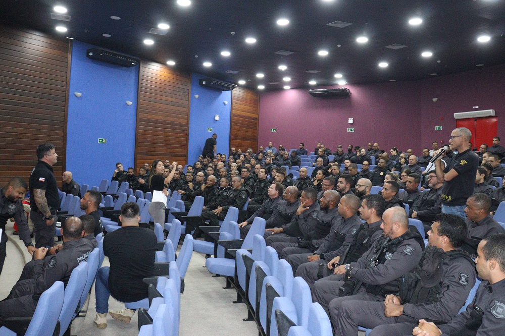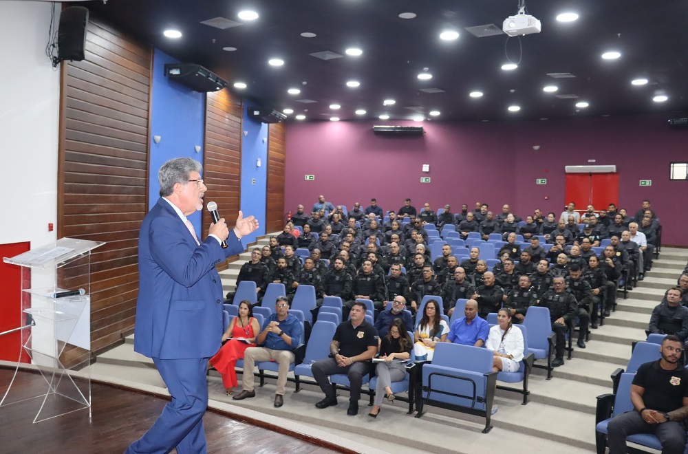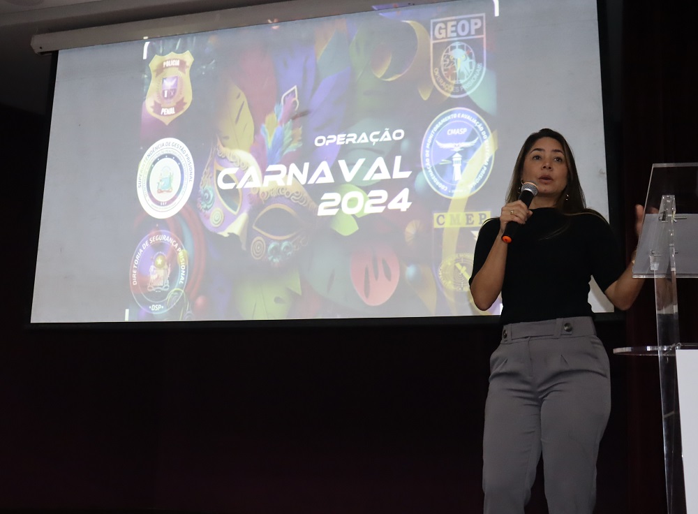 As festas populares de Salvador vão ganhar um reforço a mais, esse ano, nas ruas. A Polícia Penal estará presente nos circuitos da folia, atuando na escolta e custódia de presos em flagrante e no cumprimento de mandados de prisão com uso da tecnologia de reconhecimento facial. Essas ações serão em parceria com Secretaria de Segurança Pública (SSP). É a primeira vez que a Polícia Penal vai participar efetivamente da operação do carnaval de rua. No Complexo da Mata Escura, haverá um incremento no efetivo de policiais para o reforço das ações que já estão em curso. As rondas perimetrais vão ser intensificadas com a chegada do interior das equipes e viaturas do Grupo Especializado em Operações Penitenciárias (GEOP). O objetivo é coibir fugas e arremessos, já que este é considerado um período sensível nas Unidades Prisionais. Além disso, esse aumento do efetivo vai possibilitar a realização diária de operações de revista nas Unidades do Complexo, durante os dias de folia. Na Central de Monitoração Eletrônica de Pessoas (CEMEP), o monitoramento dos custodiados também vai ser intensificado, a fim de garantir que as determinações judiciais sejam cumpridas, e em caso de descumprimento, imediatamente os órgãos competentes vão ser acionados. Em reunião realizada no auditório da sede da SEAP, com a presença de parte do efetivo, nesta terça-feira (30), foram divulgados os detalhes de como será a atuação da Polícia Penal nas ruas e nas Unidades Prisionais do Estado. Entre os presentes, o Secretário da Administração Penitenciária e Ressocialização, José Antônio Maia e o Superintendente de Gestão Prisional, Luciano Teixeira Viana.