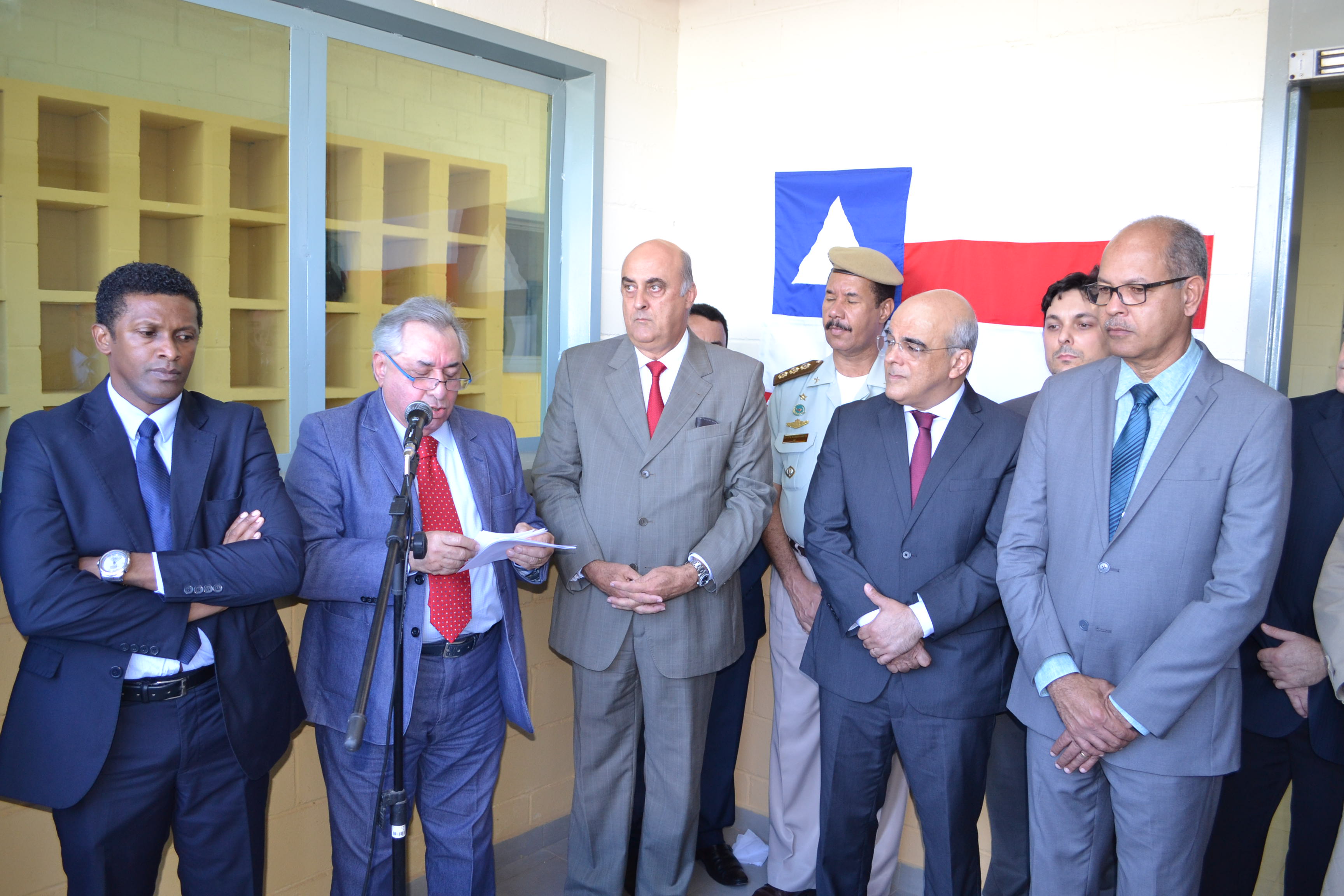 A cerimônia de inauguração aconteceu às 10h e contou com a presença do secretário da Seap, Nestor Duarte Neto; do Desembargador do TJ-Ba, Lidivaldo Reaiche, representando a presidente do TJ-Ba; do Juiz Corregedor, José Reginaldo, representando o Corregedor-Geral do TJ-Ba; do promotor de Justiça, Edmundo Reis; do Defensor Público, Pedro Paulo, representando o Defensor Público-Geral da Bahia; do Comandante do Batalhão de Polícia de Choque, Cel. Guerra; do Comandante do Batalhão de Polícia de Guarda, Ten Cel PM Moreno, e de diversas autoridades de órgãos e poderes do Estado, além de civis e servidores da pasta.