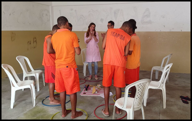 O Projeto Vida Saudável do Conjunto Penal de Juazeiro, que utiliza a dança zumba como intervenção multidisciplinar, foi descrito pela psicóloga Amanda Gabrielli Costa. A adesão e repercussão expressiva dessa estratégia foi elencada em gráficos, enquanto marcadores metodológicos de eficiência terapêutica e ocupacional.